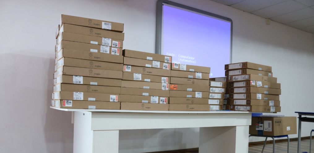 A equipe da secretaria da educação destacou o empenho na compra dos computadores que era um pedido da comunidade escolar.