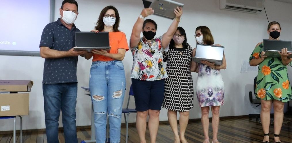 No total 70 unidades de notebooks foram cedidos aos educadores para diversas atividades, mas, principalmente, para facilitar o trabalho de planejamento de aulas, pesquisas, lançamento de notas junto ao sistema, dentre outros. Os professores assinaram termos de cessão de uso dos equipamentos.