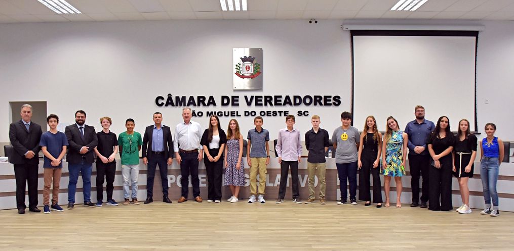 A Câmara Mirim de São Miguel do Oeste deu início nesta quarta-feira, 01, à sua 3ª Legislatura. Os vereadores mirins foram empossados durante sessão solene, realizada no Plenário da Câmara Municipal, na presença de familiares, autoridades e comunidade escolar. Catorze vereadores mirins, eleitos em novembro passado em suas escolas, tomaram posse e prestaram compromisso diante do plenário; e outros dois devem assumir a vereança na primeira sessão da Câmara Mirim.
