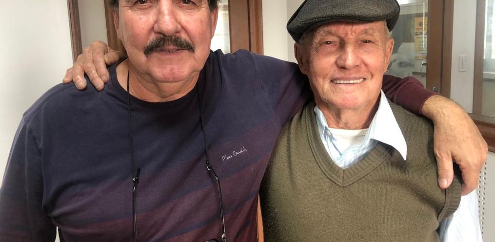 Seu Darci contou como era a vida nos primeiros anos do município e o crescimento da comunidade, além de histórias compartilhadas com o padre Aurélio.