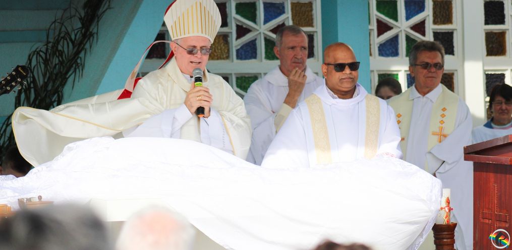 A segunda missa do dia ocorreu as 08h no santuário localizado as margens da BR 163 em Guaraciaba. A celebração das 10h, a principal do dia, foi transmitida ao vivo pela Rádio Peperi FM 99,9. A última missa está marcada para as 19h.