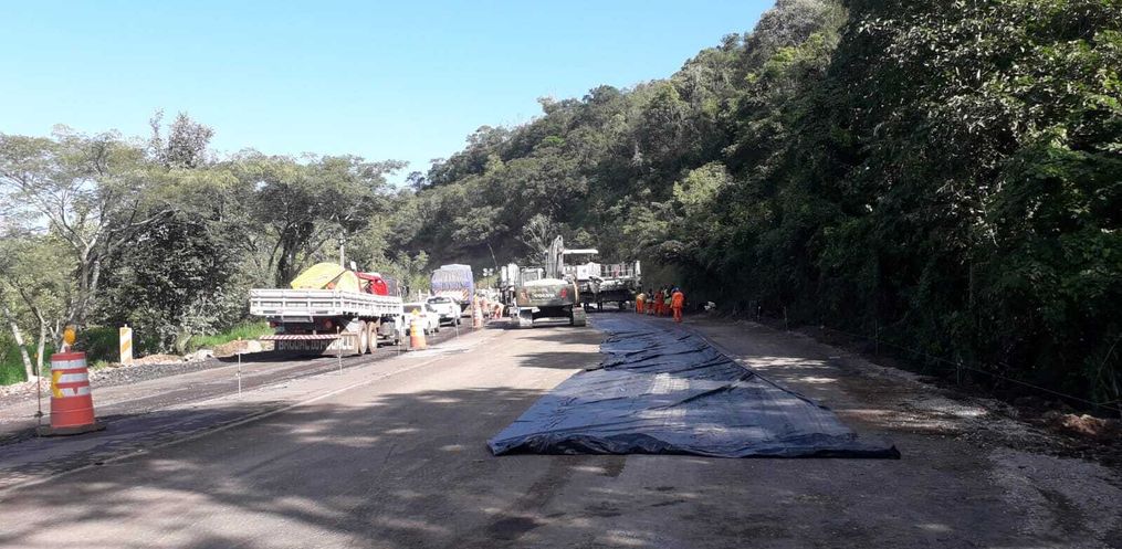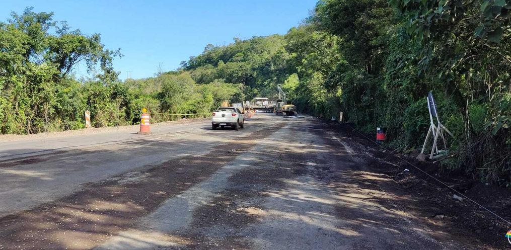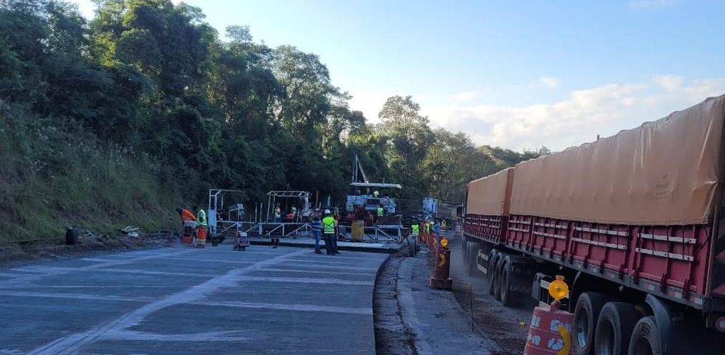 Durante a visita da Peperi no local, o trânsito fluiu bem em ambos os sentidos no sistema 'pare e siga' 24 horas. A obra acontece conforme o clima, por exemplo, chove pela parte da manhã não é possível efetuar o serviço e a equipe precisa compensar à tarde e à noite para não perder matéria-prima (concreto). Desta maneira, a empreiteira fica impossibilitada em seguir algum cronograma pré-definido, e por isso é solicitada a compreensão dos motoristas.