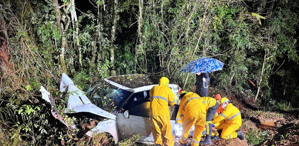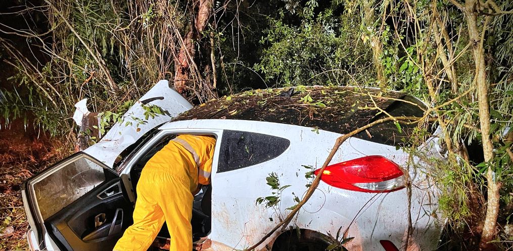 O condutor comentou no local do acidente que o carro aquaplanou enquanto seguia em direção a São Miguel do Oeste.