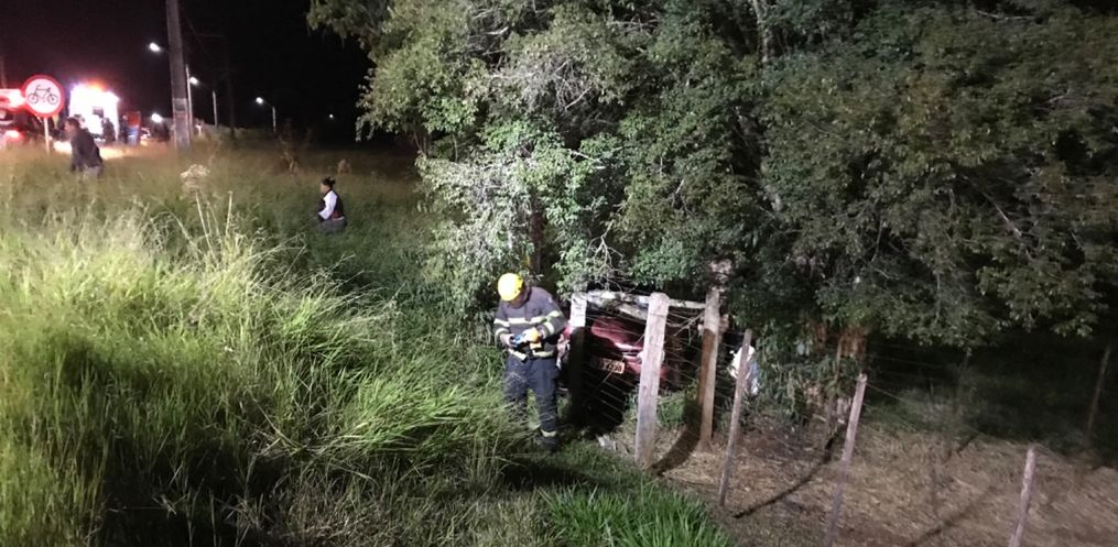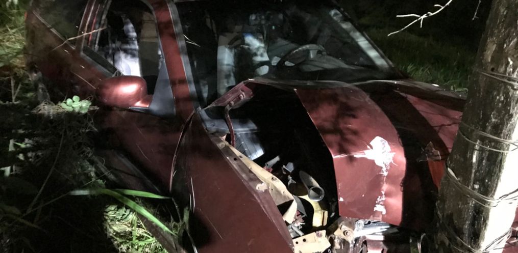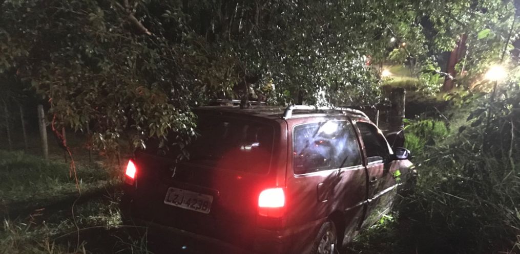 De acordo com a Polícia Militar uma Parati placas de Descanso saiu da pista e colidiu em uma árvore e parou em uma cerca.