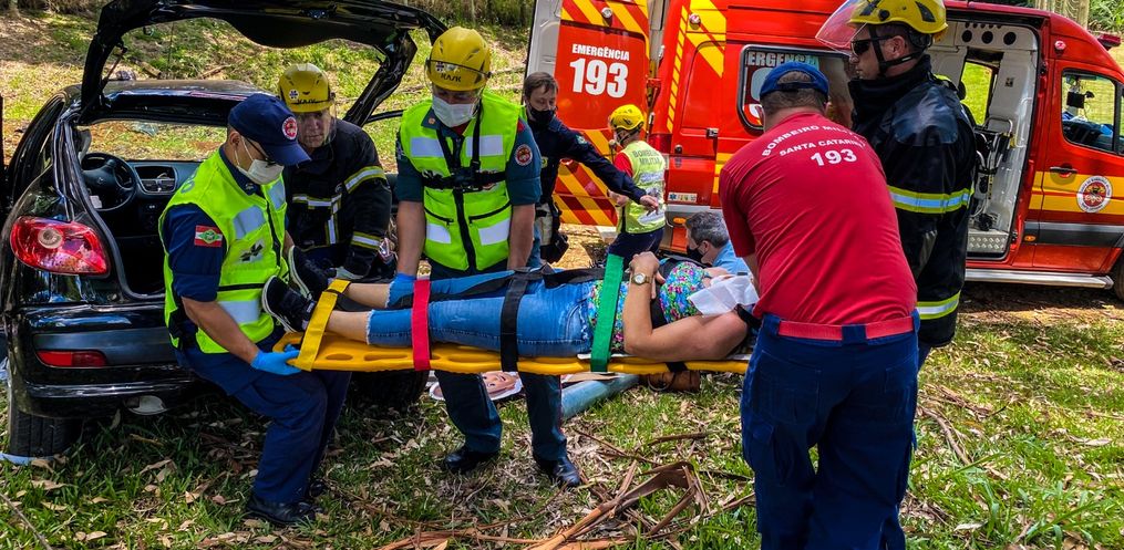 O Corpo de Bombeiros foi acionado e atendeu a mulher com ferimentos leves. Após a imobilização, ela foi levada ao Hospital Regional para a realização de exames e também uma avaliação.