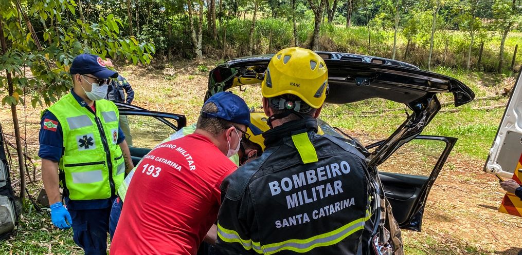 Uma mulher ficou ferida depois de sair da pista e capotar veículo na BR-163 em São Miguel do Oeste, nas proximidades do Posto Bela Vista, por volta das 12h20 desta terça-feira, 07.