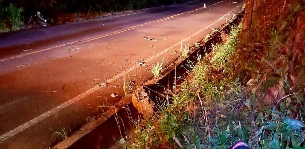 Um jovem motociclista de 22 anos sofreu vários ferimentos em uma saída de pista seguida de colisão contra um barranco na Linha São Roque, SC-305, no município de Anchieta.