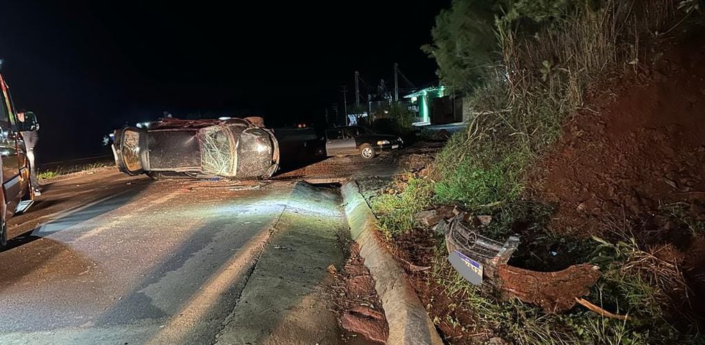 O acidente foi registrado na via periférica - BR 163, em São José do Cedro na noite deste sábado, 12, por volta das 21h32, onde um Celta, com placas de São José do Cedro saiu da pista, colidiu em um barranco e capotou.