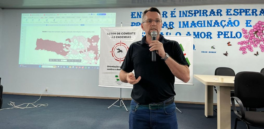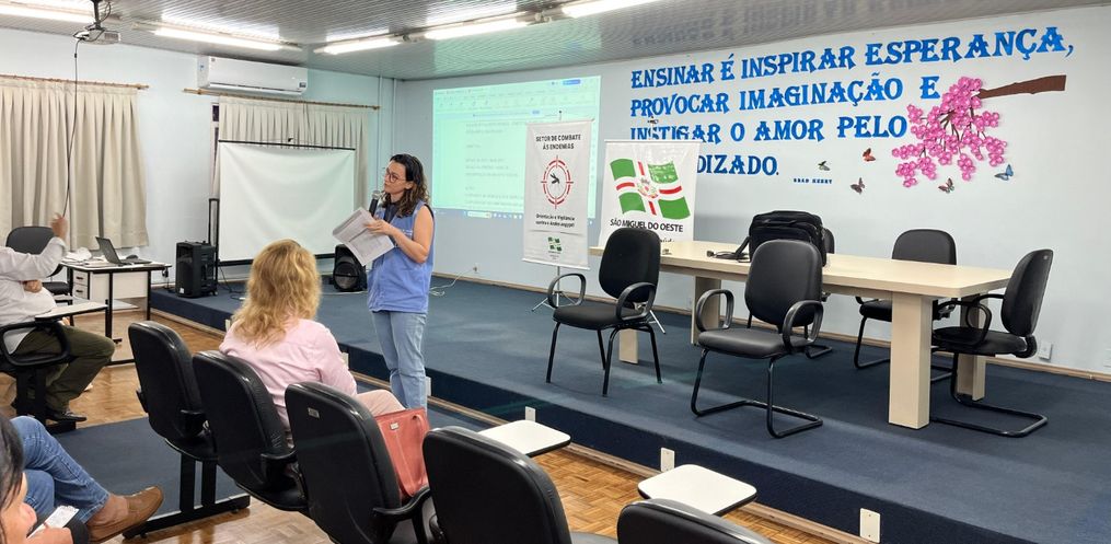 A Sala de Situação da Dengue de São Miguel do Oeste realizou uma reunião emergencial nesta quinta-feira, 21, no auditório da Secretaria de Educação. Durante o encontro foram analisados os números da doença e as ações para enfrentar esse quadro. Em menos de uma semana, foram confirmados 35 casos de dengue no município, e o total do ano já chega a 86. Em 2023, no ano todo, foram 12 casos. Neste ano, o número de casos confirmados é sete vezes maior do que em todo o ano passado./ O total de focos do mosquito Aedes aegypti identificados neste ano é de 265. O objetivo da reunião desta manhã foi mobilizar todas as entidades e instituições integrantes da Sala de Situação para realizar um grande chamamento para que todos auxiliem na eliminação do mosquito aedes aegypit.