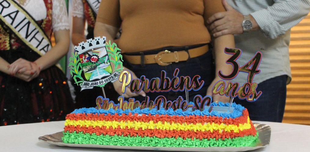 O município de São João do Oeste celebra nesta sexta-feira, 12, os 34 anos de emancipação político-adminsitrativa. Para comemorar o evento, foi realizada ampla programação no centro da cidade. As festividades tiveram diversas atrações e o tradicional corte do bolo de aniversário comemorativo. Além disso, foram distribuídos 34 bolos para a população.