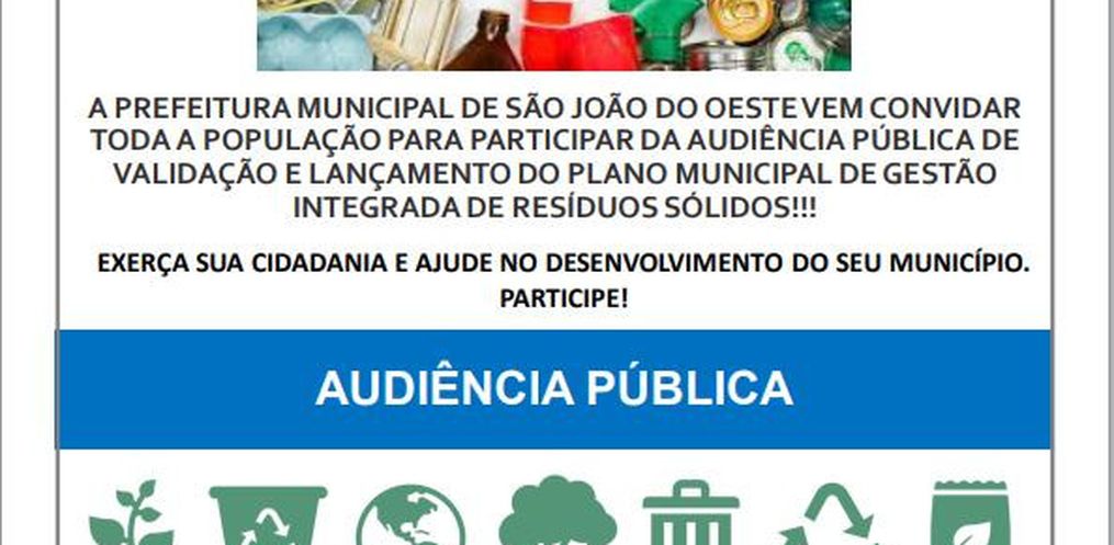 A população terá oportunidade para participar das decisões em Audiência Pública no dia primeiro de dezembro, às 14 horas no auditório da prefeitura. Arenhardt alerta que o Plano de Resíduos Sólidos vai se tornar lei que precisa ser seguida. Ele aponta necessidade de cuidados com o diagnóstico e prognóstico.