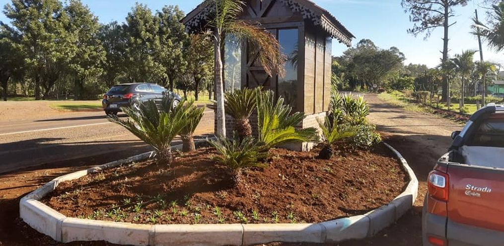 A responsável pelo setor de Urbanismo, Fabiana Welchen, explica que na entrada para linha Pauli, em Beato Roque, foi implantada a segunda parada de ônibus, uma casinha no estilo germânico, e também ocorreu o paisagismo com plantas e flores do viveiro.