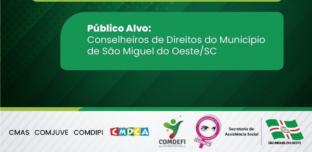 Conselheiros dos Conselhos Municipais de Assistência Social, da Juventude, dos Direitos da Pessoa Idosa, dos Direitos da Criança e do Adolescente, dos Direitos da Pessoa com Deficiência e dos Direitos da Mulher estão convidados a participar.