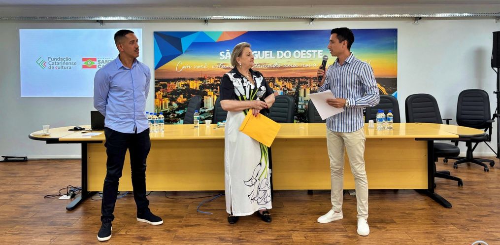 Na manhã desta sexta-feira, 14, a prefeitura de São Miguel do Oeste recebeu a atual presidente da Fundação Catarinense de Cultura de Santa Catarina, Maria Terezinha Debatin. o encontro aconteceu no salão nobre da prefeitura e reuniu artistas locais e autoridades.