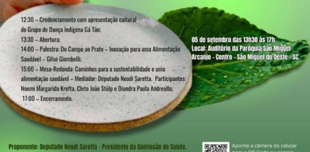 Com o tema “Sustentabilidade e Alimentação Saudável”, o seminário é uma iniciativa da Assembleia Legislativa de Santa Catarina (Alesc), em parceria com a paróquia. A proposta é incentivar o consumo consciente e a adoção de hábitos de vida mais sustentáveis, tanto na mesa quanto no campo.