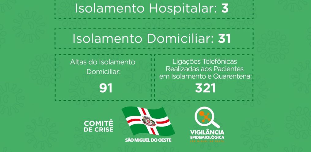 Mais três casos suspeitos de coronavírus, o COVID-19, foram registrados em São Miguel do Oeste. Após série de casos descartados, o número voltou a saltar para três pacientes monitorados no município. O Boletim Epidemiológico divulgado nesta segunda-feira, 14, pelo Comitê de Crise do Coronavírus, também trouxe a informação que não há casos confirmados.