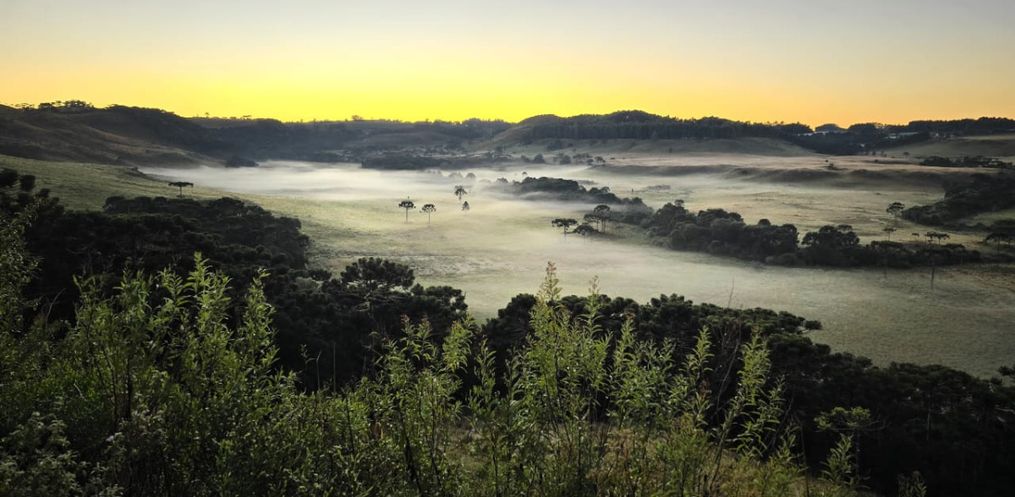 O Vale do Caminhos da Neve, situado a 3 quilômetros do Centro de São Joaquim, na Serra catarinense, amanheceu coberto por uma fina camada de gelo durante o amanhecer desta quinta-feira (18). Com registros de temperatura mínima de 1,5 ºC, segundo o Instituto Nacional de Meteorologia (INMET), esta foi a primeira geada do ano na região.