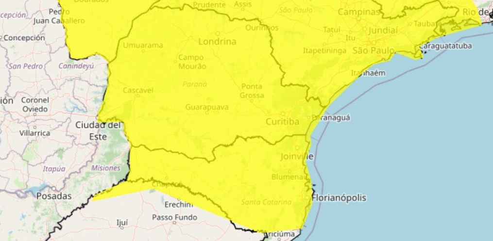 Segundo o Inmet, há chance de 50 milímetros de chuva por dia e ventos intensos que podem chegar a 60 km/h. O alerta informa para riscos de corte de energia elétrica, queda de galhos de árvores, alagamentos e de descargas elétricas.