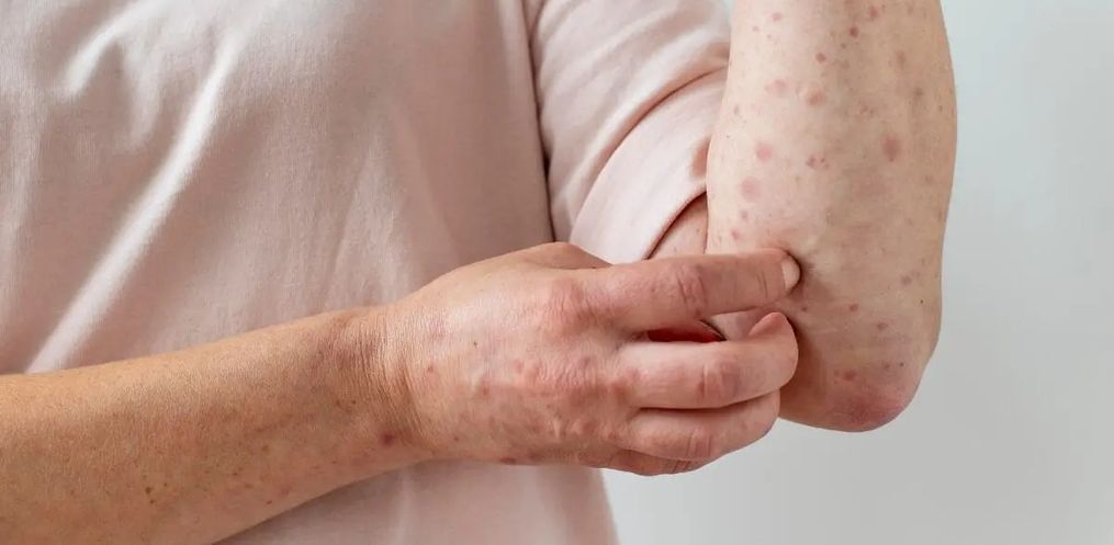 As erupções na pele começam no rosto e se espalham para outras partes do corpo, incluindo mãos, pés, genitais e áreas mucosas.