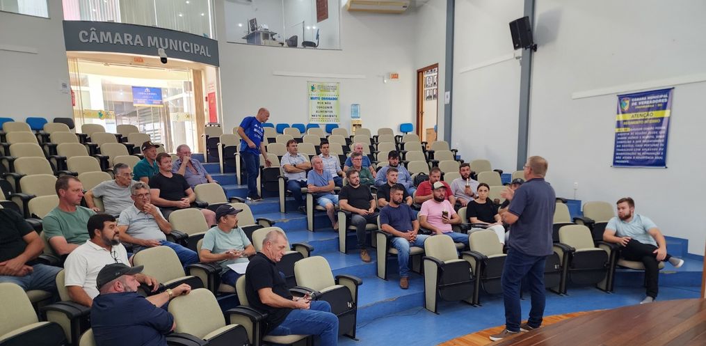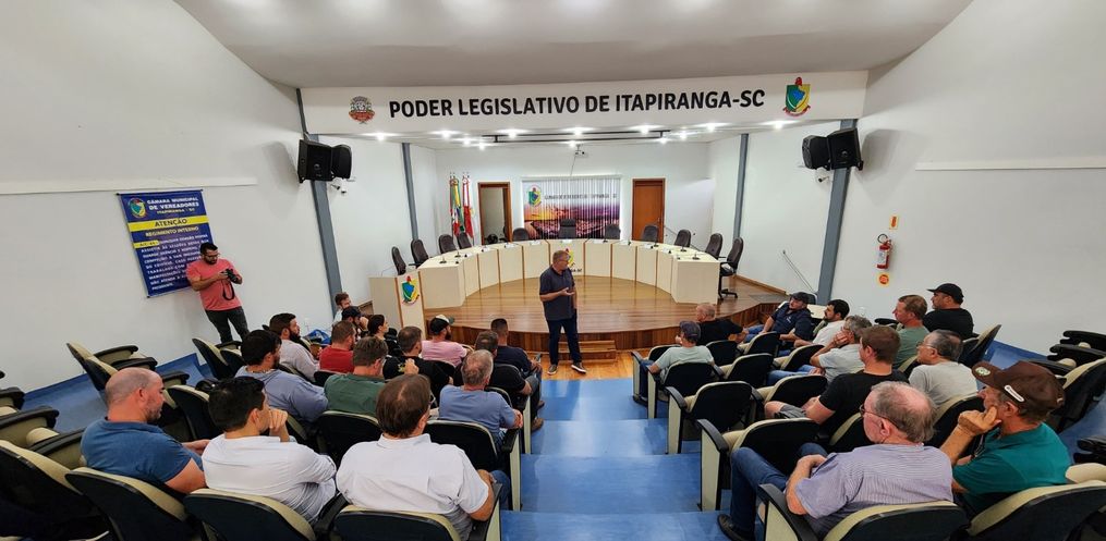 Reunião define participação em projeto-piloto de gado de corte em Itapiranga. Encontro foi realizado na tarde desta terça-feira, 15, na Câmara de Vereadores de Itapiranga. Projeto é uma parceria entre a Prefeitura, Sebrae, Farmavet e produtores. Conforme o Proprietário da Farmavet, Lazie De Col, os produtores foram apresentados aos objetivos do teste.