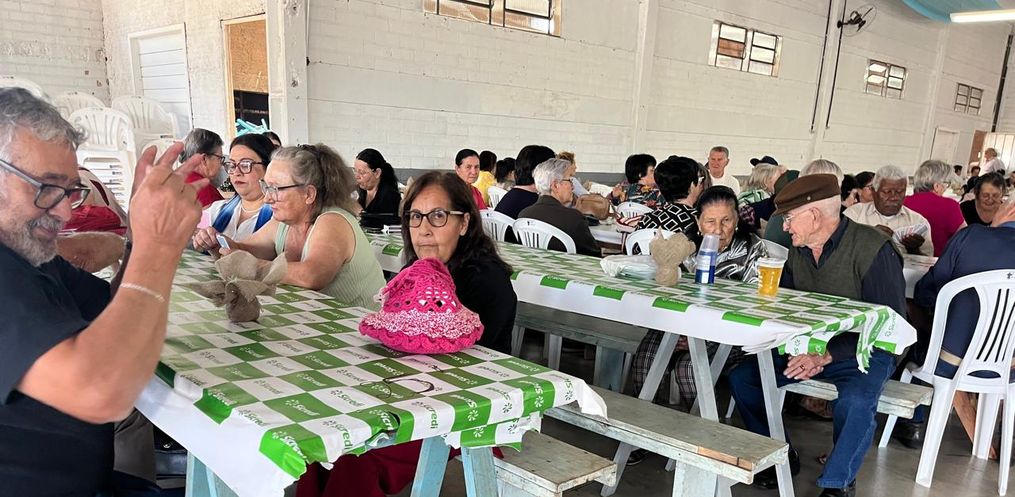 A Secretaria de Assistência Social mantém parceria com os grupos de idosos ao longo de todo o ano. De acordo com Raquel Fragato, essa parceria inclui o fornecimento de lanches nas reuniões que acontecem às quartas-feiras nos clubes, além da promoção de atividades de convivência e lazer. Ela destaca que já é tradição a Secretaria promover, no mês de outubro, um evento de encerramento com os grupos, em alusão ao Dia do Idoso.