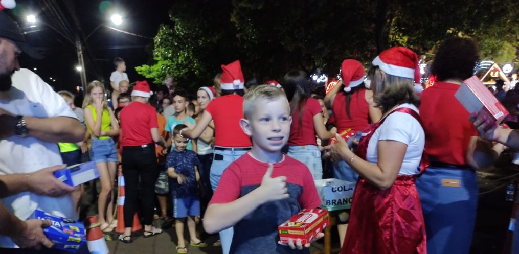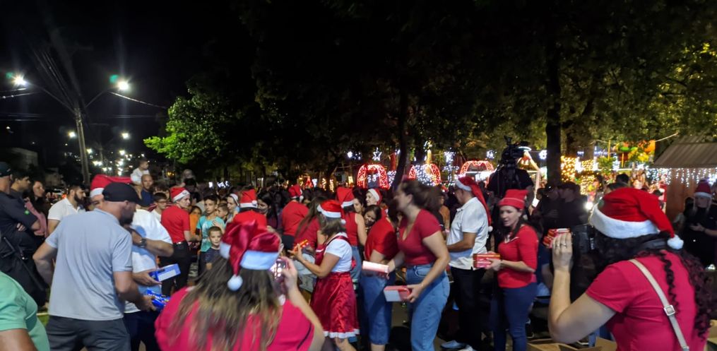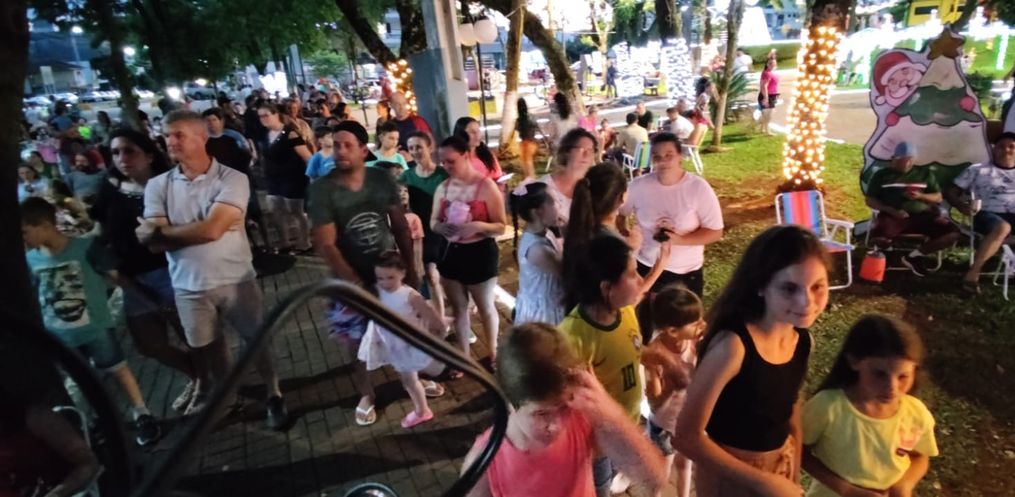 Além da vinda do Papai Noel, a administração municipal e grupos realizaram apresentações culturais para um grande público que esteve presente na noite deste sábado, 16, na Praça Antônio Foppa.