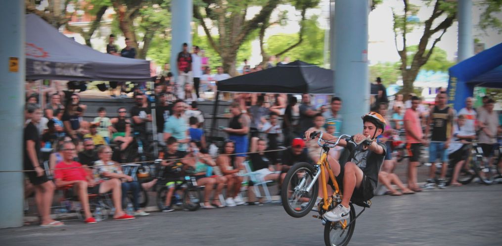 A segunda edição do evento Rei do Grau, voltado à prática de manobras de wheeling com bicicletas, reuniu cerca de 140 participantes na tarde desse domingo, 23, na Praça Walnir Bottaro Daniel, em São Miguel do Oeste.