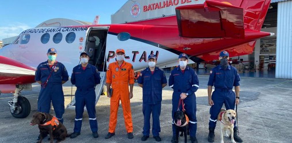 O primeiro grupo desta segunda equipe é composto por quatro bombeiros militares e três cães de resgate: Chewbacca, Marley e Zaara, formando três binômios. Eles vieram de Joinville, Governador Celso Ramos, Brusque e Itapema. No total, irão nesta segunda etapa oito militares e seis cães de busca.