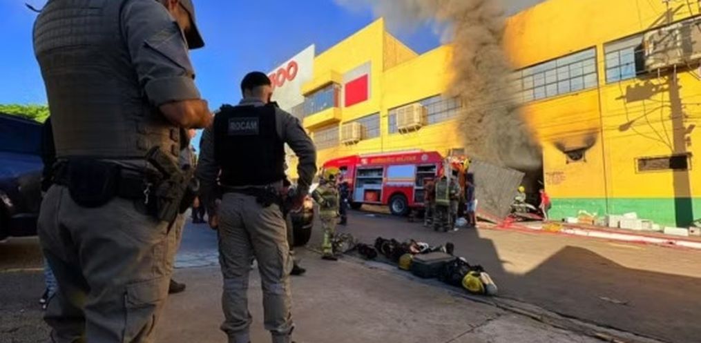 Imagens registradas por testemunhas mostram o momento da explosão em um dos acessos do supermercado. No vídeo, é possível ver um grupo de bombeiros sendo atingido pela força da explosão enquanto se preparava para entrar no local, sendo arremessado com o impacto.