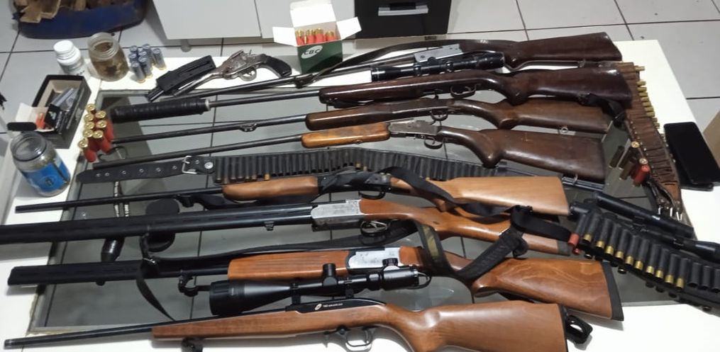 A operação policial desta sexta-feira, 21, resultou na prisão de 6 pessoas em flagrante delito e na apreensão de 15 armas de fogo, além de munições de diversos calibres. Em Itapiranga, ocorreu uma prisão de um homem com 2 armas de fogo.