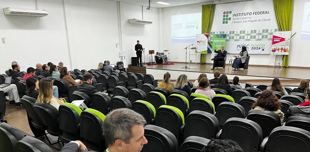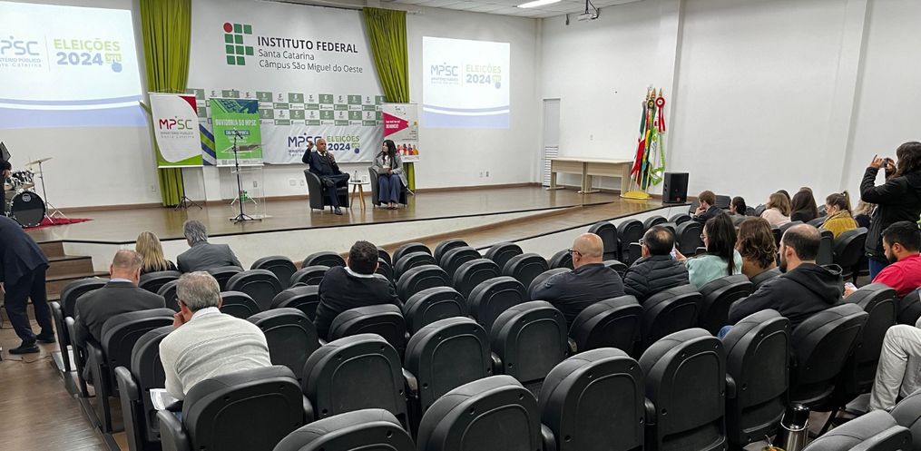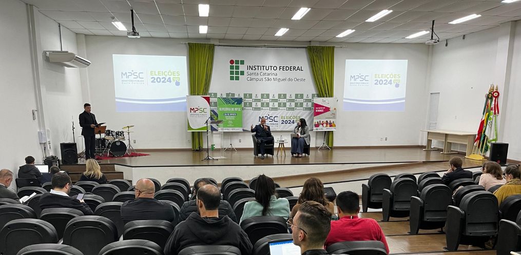 São Miguel do Oeste recebeu nessa terça-feira, 14, o seminário regional sobre as Eleições de 2024. O evento, promovido pelo Ministério Público de Santa Catarina (MPSC) com o apoio de órgãos parceiros, marca a chegada do ciclo de debates às regiões oeste e meio-oeste do estado.