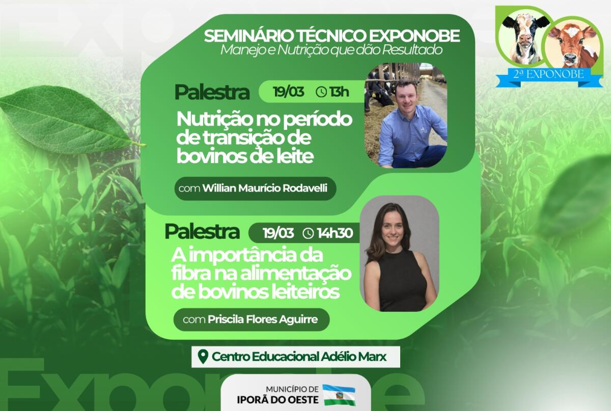 Um seminário técnico, voltado à bovinocultura leiteira, está programado para abrir a 2ª edição da Exposição da Novilha e da Bezerra (Exponobe), em Iporã do Oeste. O evento será realizado no espaço multiuso do Centro Educacional Adélio Max, na quinta-feira, 19 de março, e será aberto a produtores rurais, estudantes e interessados no setor.