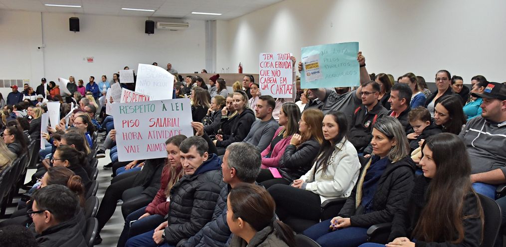 Durante a sessão ordinária desta quinta-feira, 11, da Câmara Municipal de Vereadores, servidores públicos municipais de São Miguel do Oeste lotaram o plenário do Poder Legislativo e apresentaram sua pauta de reivindicações aos vereadores. Os servidores, através de assembleia do Sindicato dos Servidores Públicos Municipais do Extremo-Oeste (Sisme), deflagraram nesta semana estado de greve.
