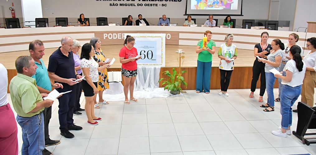 A Câmara de Vereadores de São Miguel do Oeste realizou na noite desta quarta-feira uma sessão solene para homenagear os 60 anos da Campanha da Fraternidade. A CF foi criada em 1964 pela Conferência Nacional dos Bispos do Brasil, e neste ano de 2024 tem como tema "Fraternidade e Amizade Social". A sessão foi proposta pelos vereadores Cris Zanatta, Maria Tereza Capra, Nini Scharnoski e Paulo Drumm.