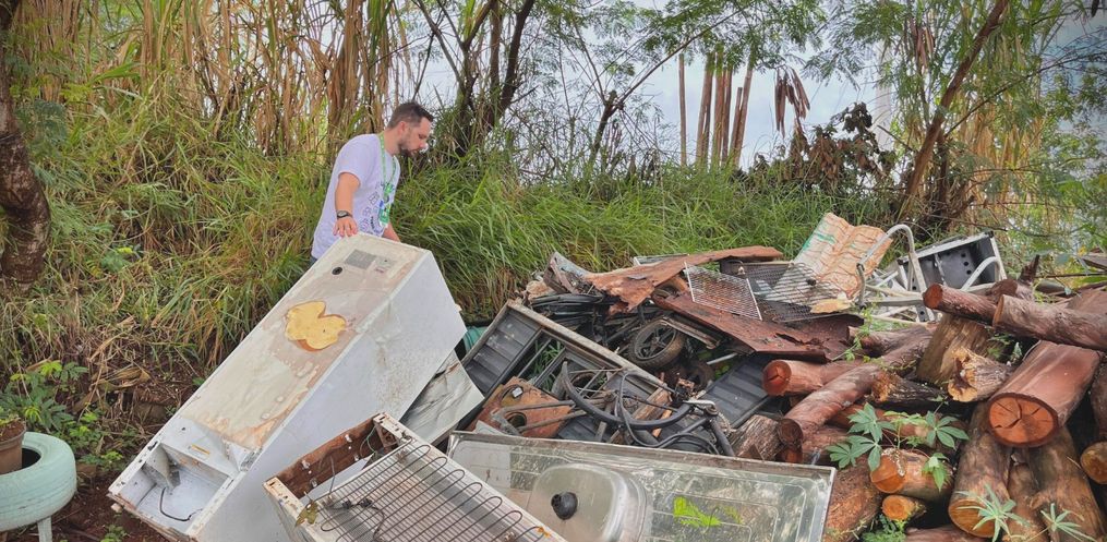 Durante a ação, foram encontrados diversos pontos com acúmulo de lixo e presença de larvas do mosquito transmissor da dengue. Um dos locais mais preocupantes foi um barranco, onde havia grande quantidade de resíduos descartados irregularmente, incluindo plástico, móveis velhos e lixo doméstico.