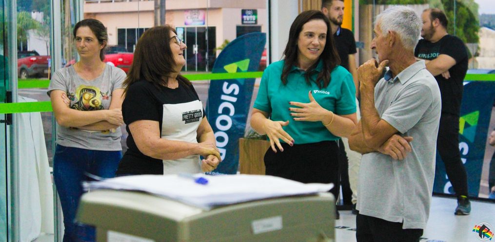Ela reforçou que o novo espaço é mais amplo para atender os clientes, mais privacidade e que inspira as pessoas a interagirem com a marca Sicoob, além de sempre realizar um atendimento humanizado.