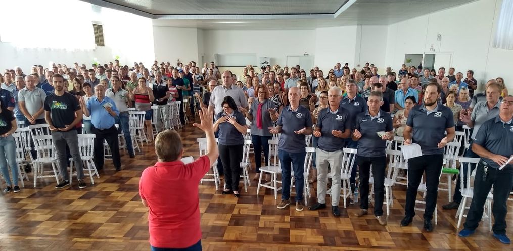 O presidente José Cesar Wunsh esteve presente no encontro junto com outros dirigentes detalhando a movimentação financeira e as projeções para este ano. José Cesar relata que essa pré-assembleia abriu o roteiro de encontros da cooperativa.