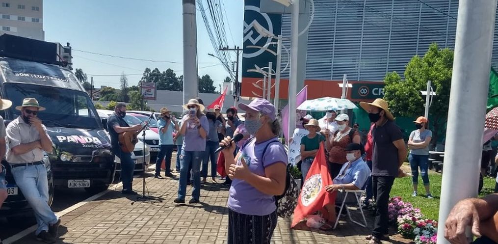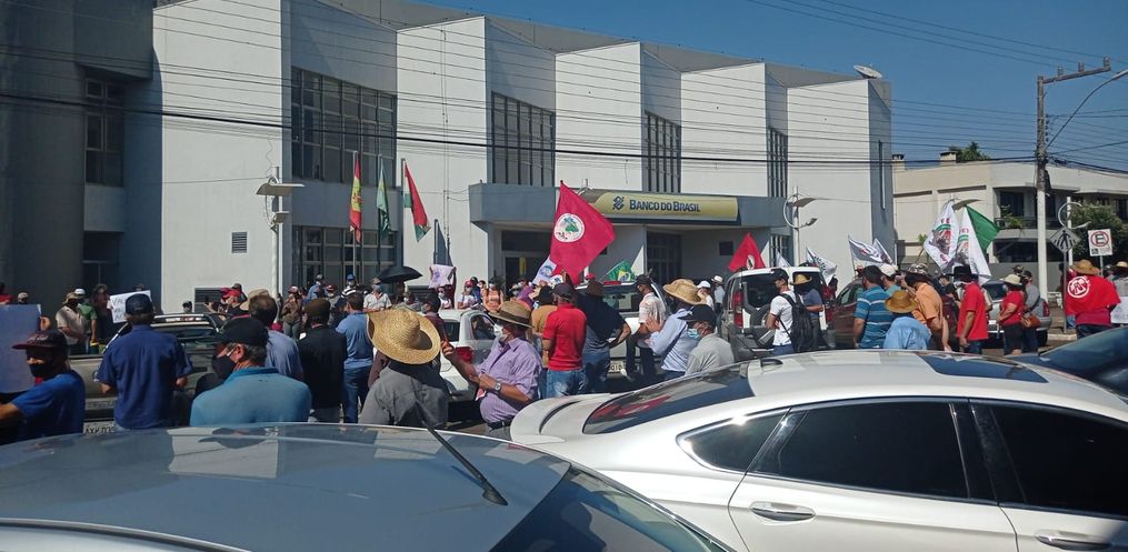 Na tarde desta terça-feira, 16, agricultores se reuniram em frente à agência do Banco do Brasil para entregar as reivindicações para o setor.