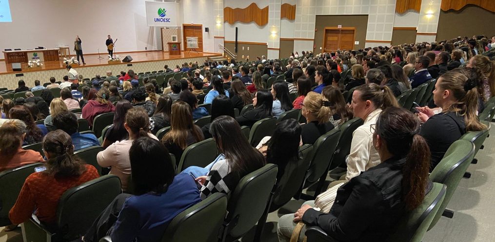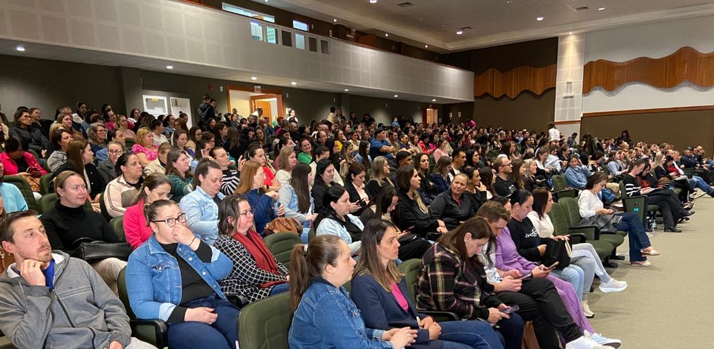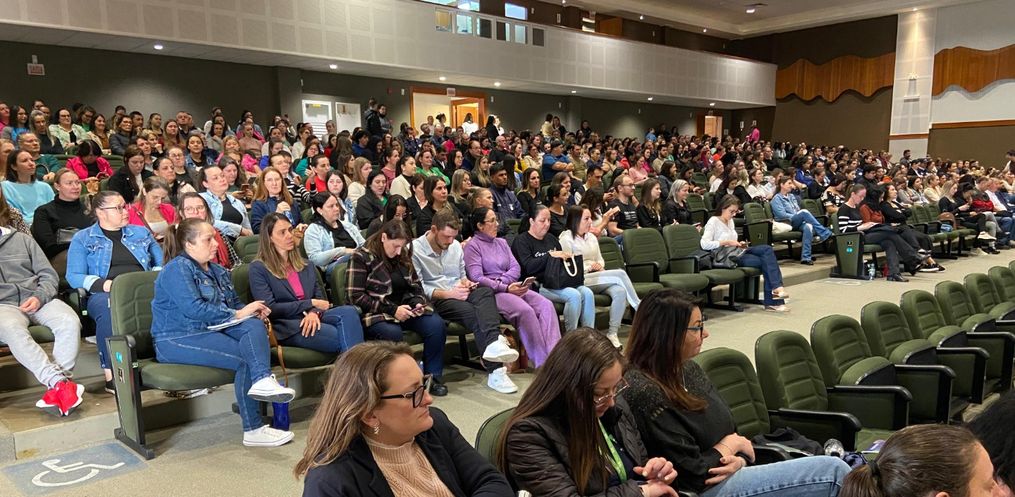 Nesta quarta-feira, 23, o evento iniciou por volta das 07h45, no Centro Cultural da Unoesc, em palestra com o tema “Saúde Mental no Ambiente de Trabalho”. Participaram servidores da Secretaria de Educação e da Secretaria de Saúde. Já à tarde o evento será repetido, mas com a participação dos profissionais da Educação Infantil, Pré-escola e demais secretarias.