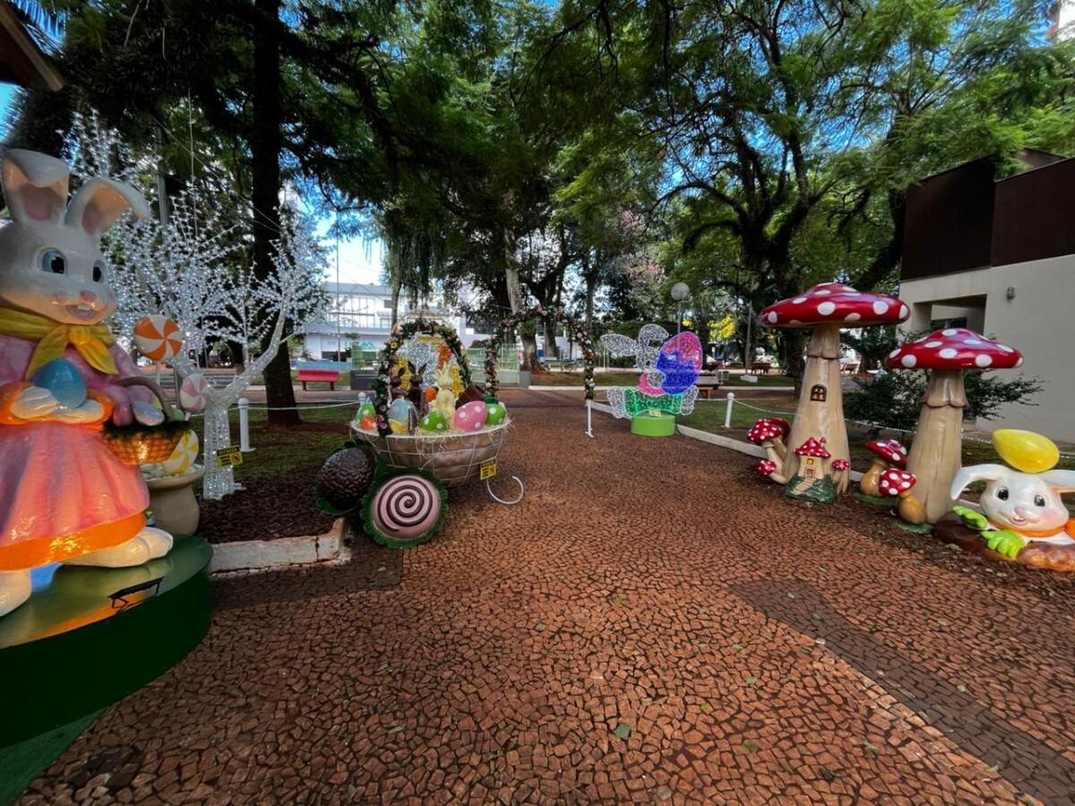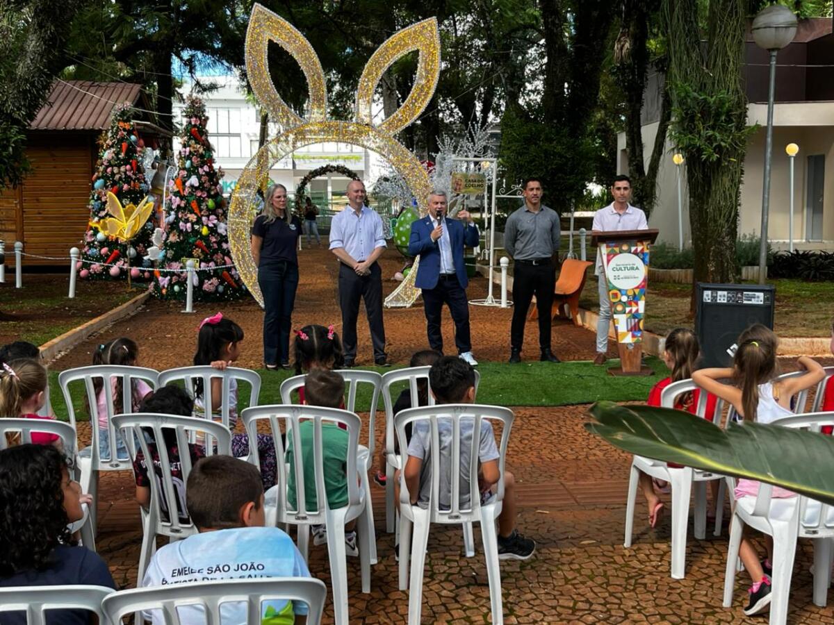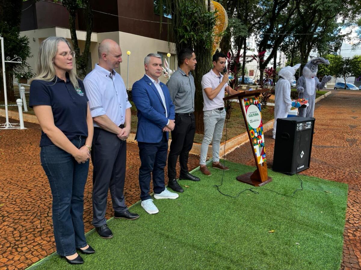 A programação de Páscoa de São Miguel do Oeste foi oficialmente aberta na tarde desta quinta-feira, 19, com a inauguração da decoração temática na Praça Central do município.