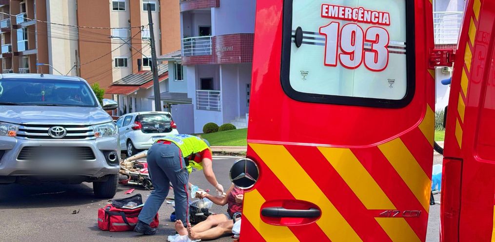 A condutora da moto foi socorrida pelos bombeiros consciente e orientada, apresentando escoriações. O motorista da camionete não se feriu.