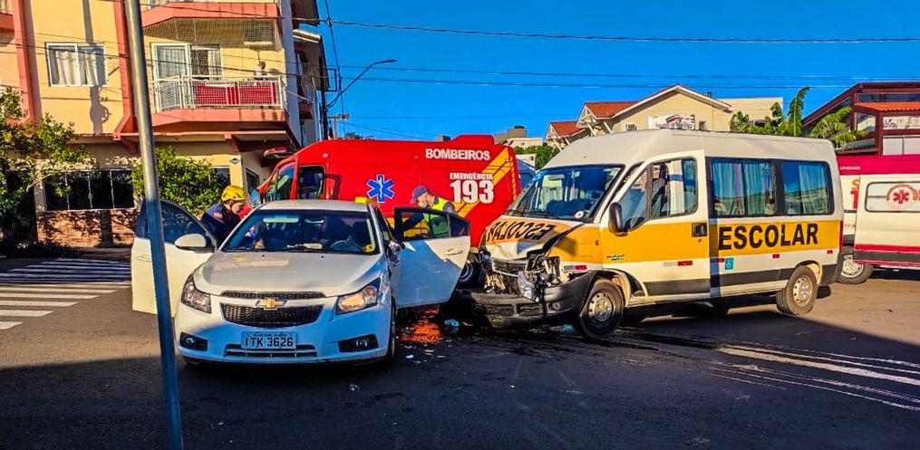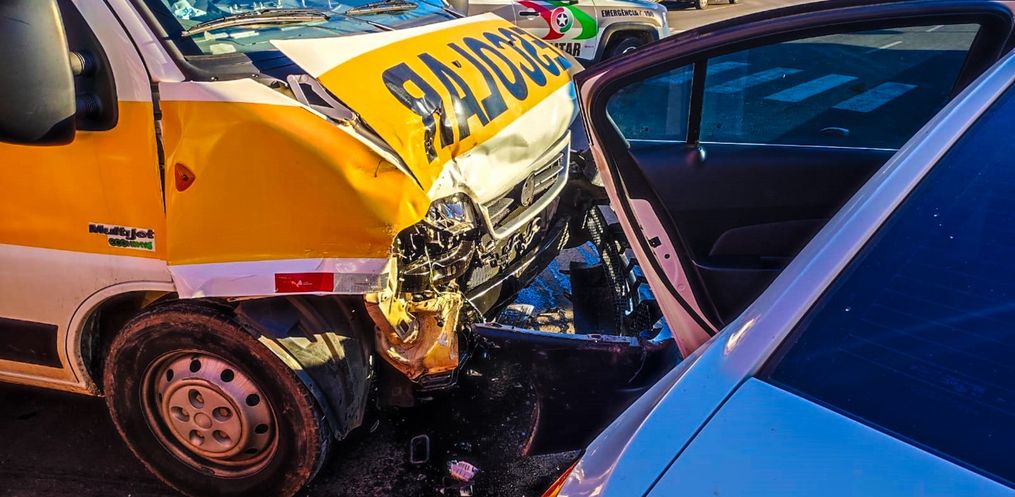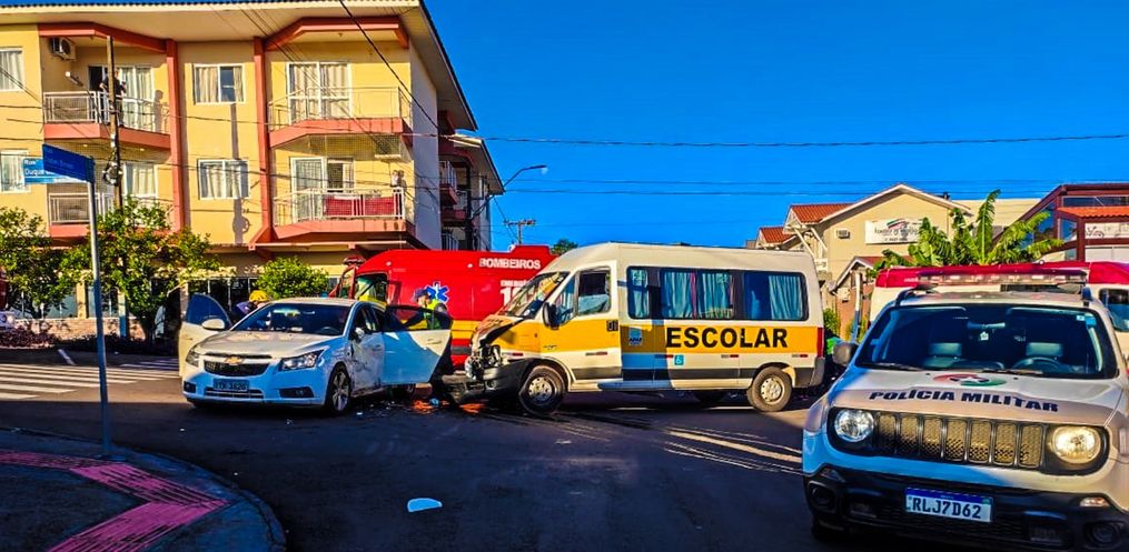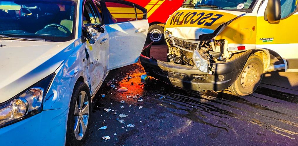 Já dentro da Van escolar que pertence à APAE do município, havia alunos e apenas um precisou de atendimento. A Polícia Militar também esteve presente e fez todos os levantamentos necessários da colisão lateral.