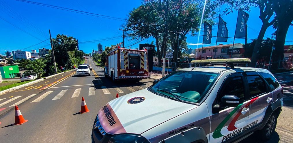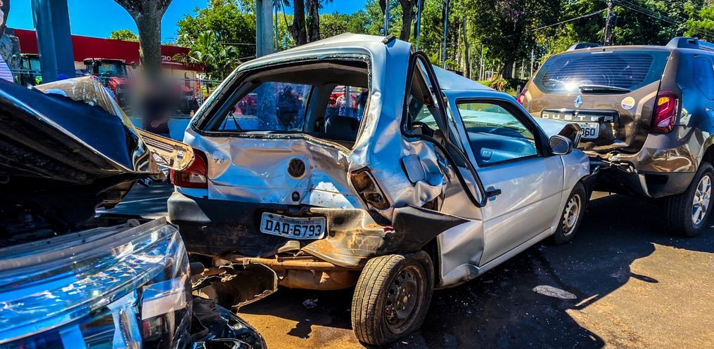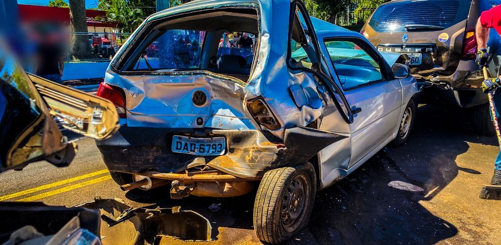 O Corpo de Bombeiros foi chamado, pois no veículo Gol que ficou destruído com a colisão traseira, havia duas pessoas, que tiveram ferimentos e foram conduzidas até a UPA 24h.