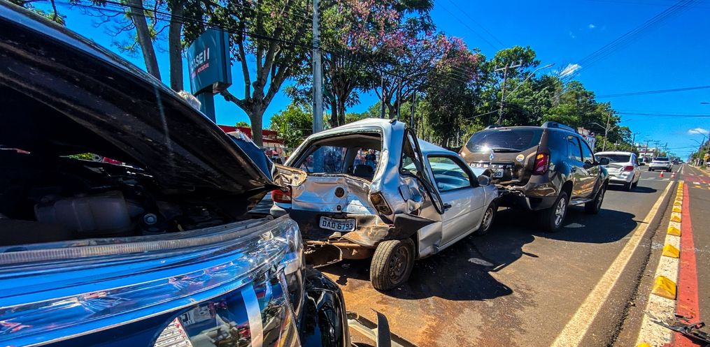 A ocorrência de engavetamento foi registrada por volta das 10h40 deste sábado, 05, na Waldemar Rangrab, proximidades da Praça Belarmino Anoni, em São Miguel do Oeste.