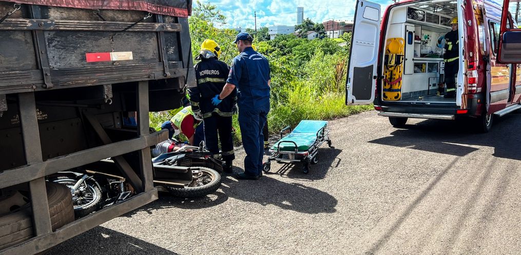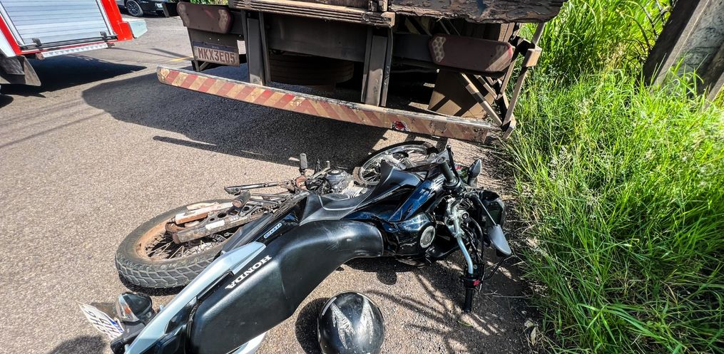Um homem ficou gravemente ferido ao colidir com a moto em que conduzia, na traseira de um caminhão que estava estacionado, a rua José Bernardi, bairro São Gotardo em São Miguel do Oeste. O acidente foi por volta das 15h30 deste sábado, 21.