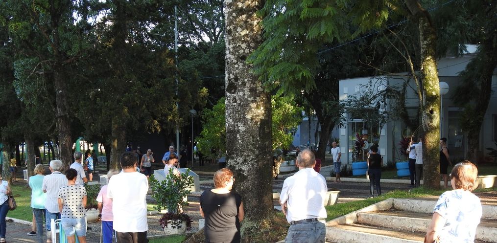 A movimentação é intensa na manhã desta quarta-feira, 01, na Praça Walnir Bottaro Daniel, onde está acontecendo a vacinação contra a gripe para idosos (60 anos acima) e profissionais da saúde. Uma equipe trabalha na organização das filas, para manter um espaçamento seguro entre as pessoas, a fim de prevenir contaminações.