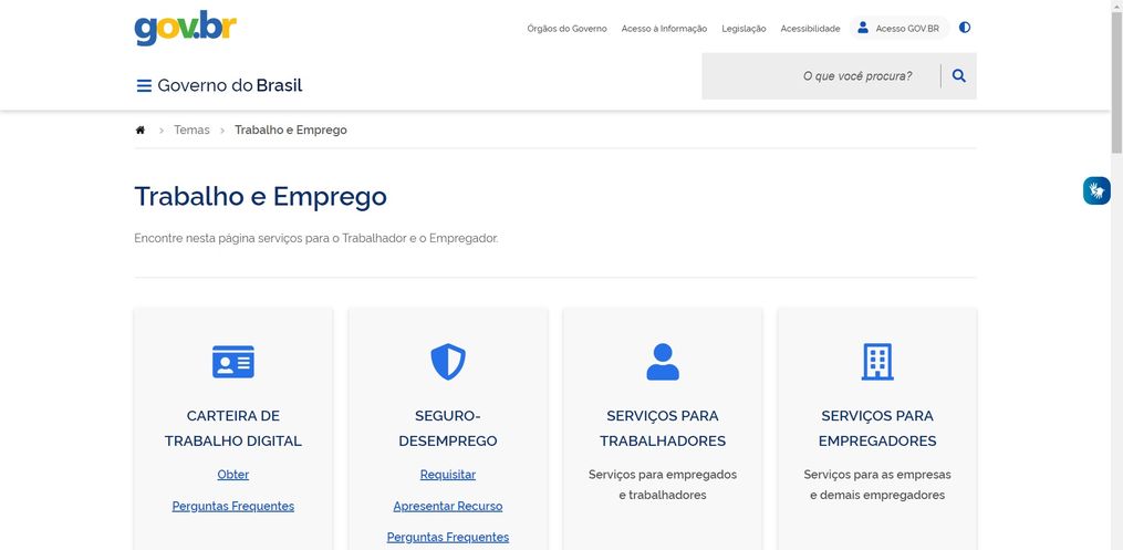 Vale lembrar que em razão da Portaria nº 1.065 de 23/09/2019 a Carteira de Trabalho Digital substituiu a emissão do antigo modelo impresso, sendo necessário ao trabalhador informar apenas o número do seu CPF no momento da contratação. SEGURO DESEMPREGO: o benefício do Seguro Desemprego pode ser solicitado pelo próprio requerente através do site www.gov.br/trabalho ou por meio do aplicativo Carteira de Trabalho Digital, disponível gratuitamente para celulares nas versões Android e IOS.