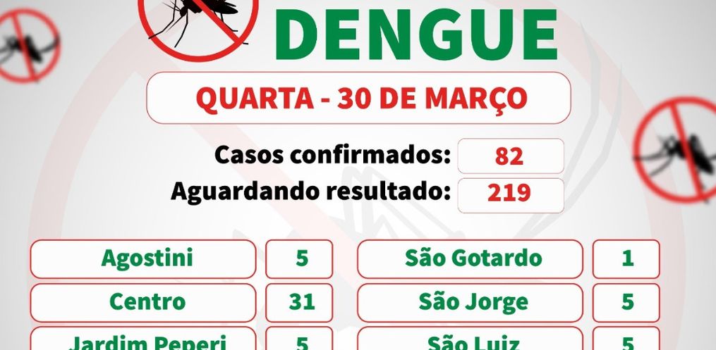 O município de São Miguel do Oeste chegou nesta quarta-feira, 30, à marca de 82 casos confirmados de dengue apenas neste ano. Desse total, 80 são apenas deste mês de março.