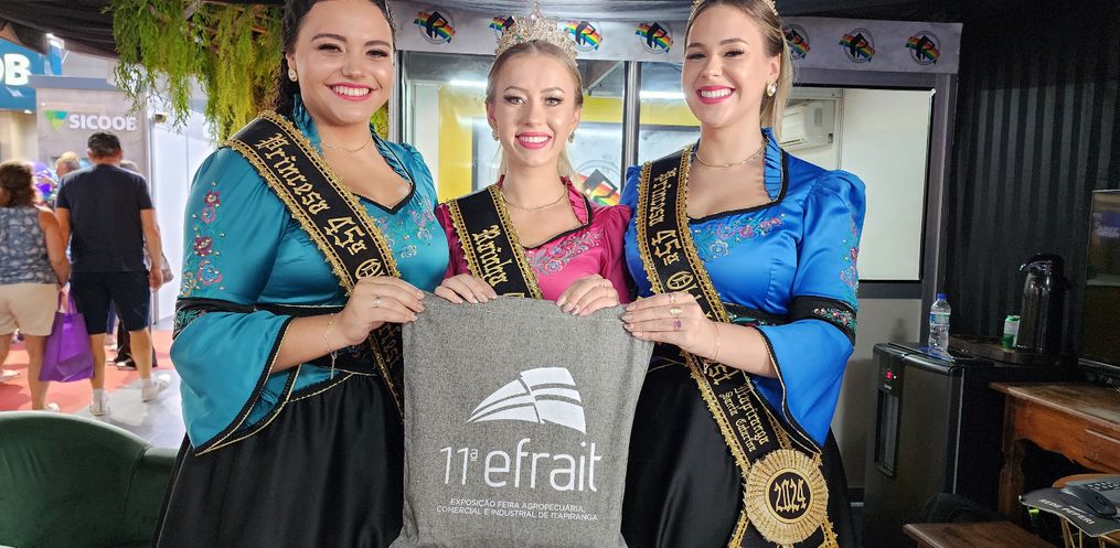 No último dia de feira, elas visitam todos os expositores para entregar uma lembrança em forma de agradecimento pela participação da 11ª edição da Exposição Feira Agropecuária, Comercial e Industrial de Itapiranga, que neste ano, teve 161 espaços comercializados.