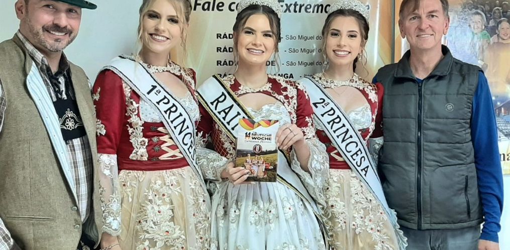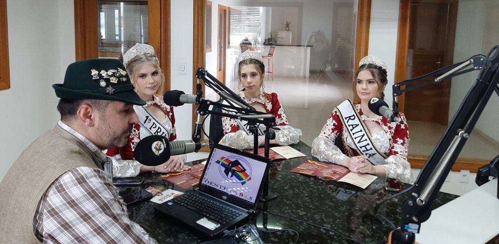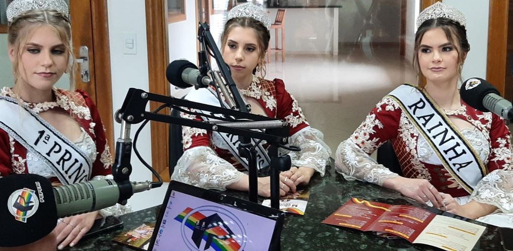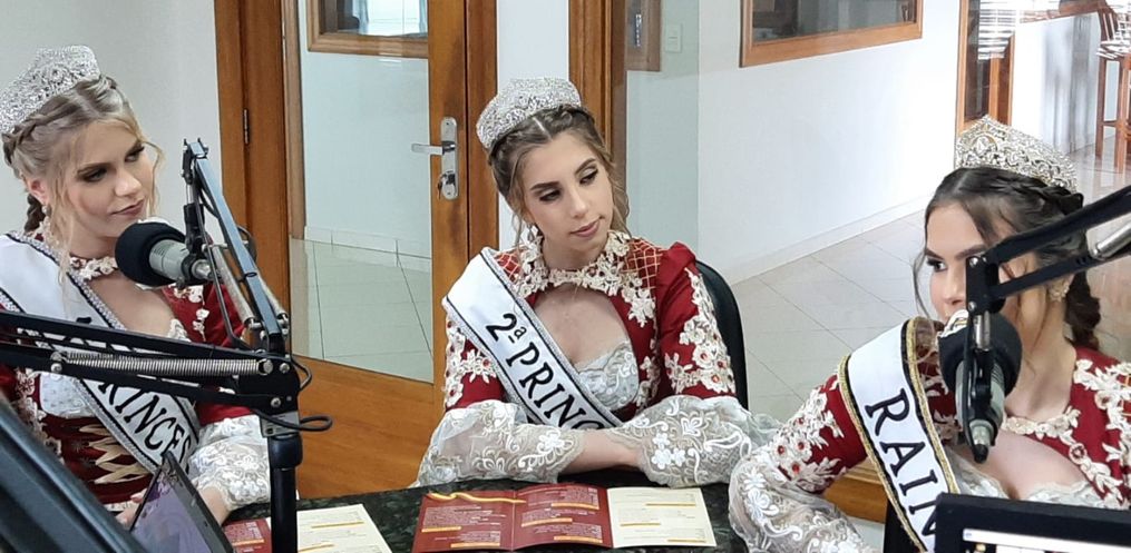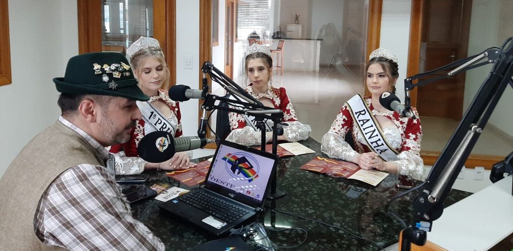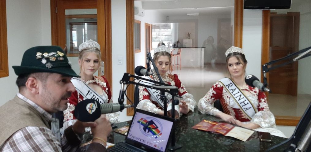 Na tarde desta terça feira, 16, a Rainha Laura Specht de Oliveira, a 1ª Princesa Cristine Immig e a 2ª Princesa Pâmela Schneider Martins, estiveram nos estúdios da Rádio Oeste FM juntamente com o Secretário de Administração, André Klunk divulgando a 14ª Deutsche Woche.
